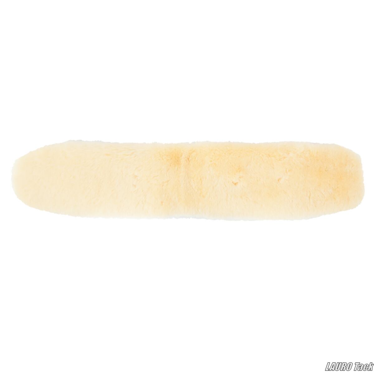 やわらかなシープスキン裏地付き腹帯カバー。医療用なめしシープスキンは衛生的で汗に強く、細菌の繁殖源になりにくい仕様。敏感肌の馬に適しています。丈夫な面ファスナーで簡単装着可能。ポリコットン素材にキルティング加工。30℃で専用洗剤使用推奨。