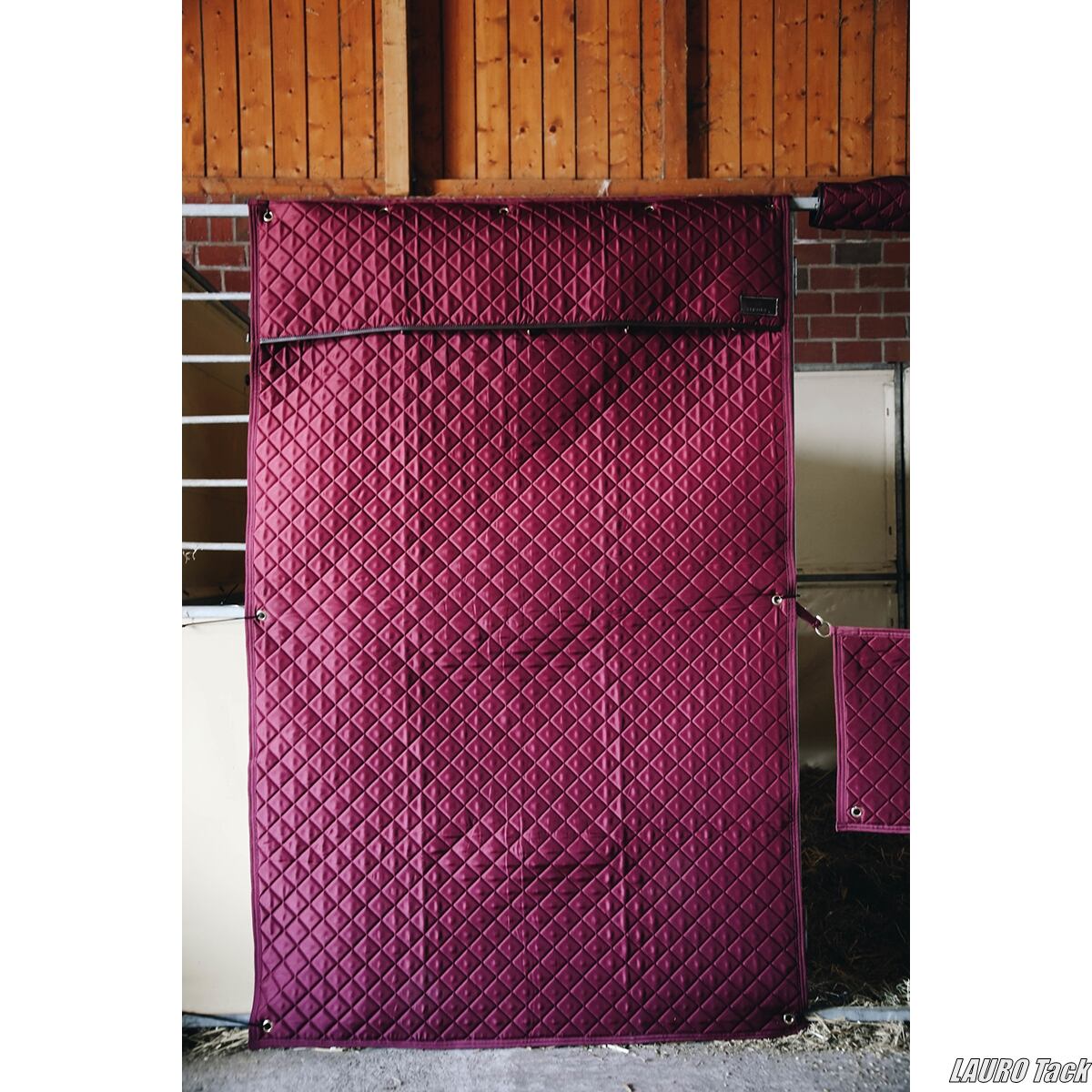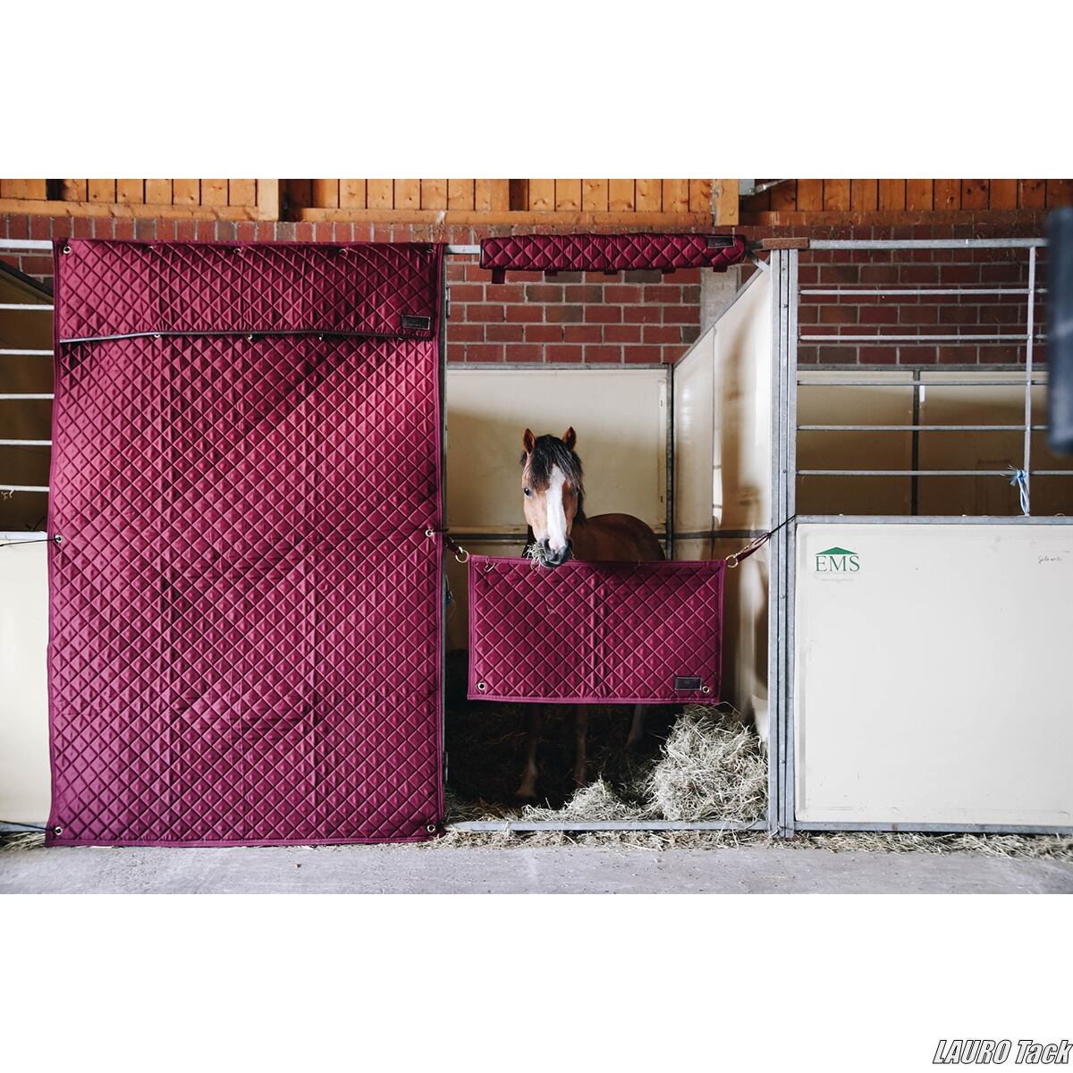 Kentuckyの上質なステーブルカーテン。高品質600Dポリエステル製で、静かな馬房環境をサポート。補強された面ファスナーリング5個で取り付け簡単。上部に隠しフック付き。ダイヤモンドキルティングデザイン。サイズ142×200cm。30℃洗濯可、乾燥機不可。
