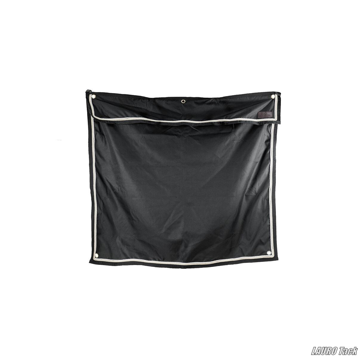 Kentucky Classicコレクションのショートタイプステーブルカーテン。1680D防水生地製で軽量。ロールアップしやすく、面ファスナーで簡単に固定可能。水を吸収せず色あせしにくい素材。Kentuckyロゴ入り。サイズ135×125cm。30℃洗濯可、乾燥機不可。