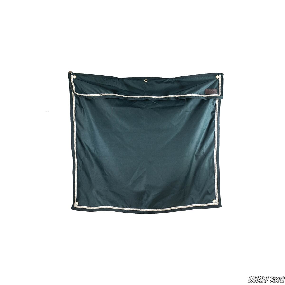 Kentucky Classicコレクションのショートタイプステーブルカーテン。1680D防水生地を使用し、軽量で扱いやすい設計。面ファスナーで簡単に固定可能。水を吸収せず色あせしにくい素材。Kentuckyロゴ入り。ダークグリーンはゴールドカラーの装飾コード仕様。サイズ135×125cm。30℃洗濯可、乾燥機不可。