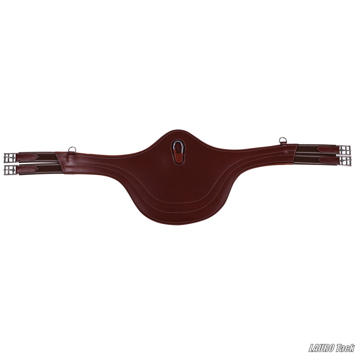 総合鞍や障害鞍に使用できる腹帯です。腹部を保護するベリーガードタイプです。ジャンプ時に馬の腹部を保護します。ベリーガードにはスナップフックが付いています。腹帯の側面にはサイドレインなどを取り付けるリングが付いています。両側にゴムがあり締めやすい設計です。ローラー付きバックルが付いています。上品なステッチが施されています。