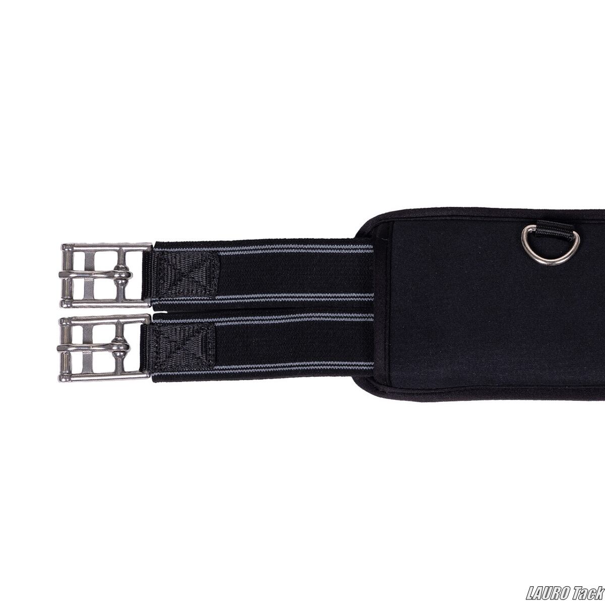 腹帯のカーブ形状により馬の動きを妨げにくい設計です。補助手綱を取り付けるためのリングが複数付いています。両端にゴムがあり腹帯を締めやすく馬にも快適です。柔らかいクッションパッドにより敏感な馬にも適しています。ローラー付きバックルが付いています。洗濯ネットに入れて30℃で洗濯機洗いが可能です。素材はネオプレンです。クッション素材は柔らかいクッションパッドです。金具はステンレススチールです。
