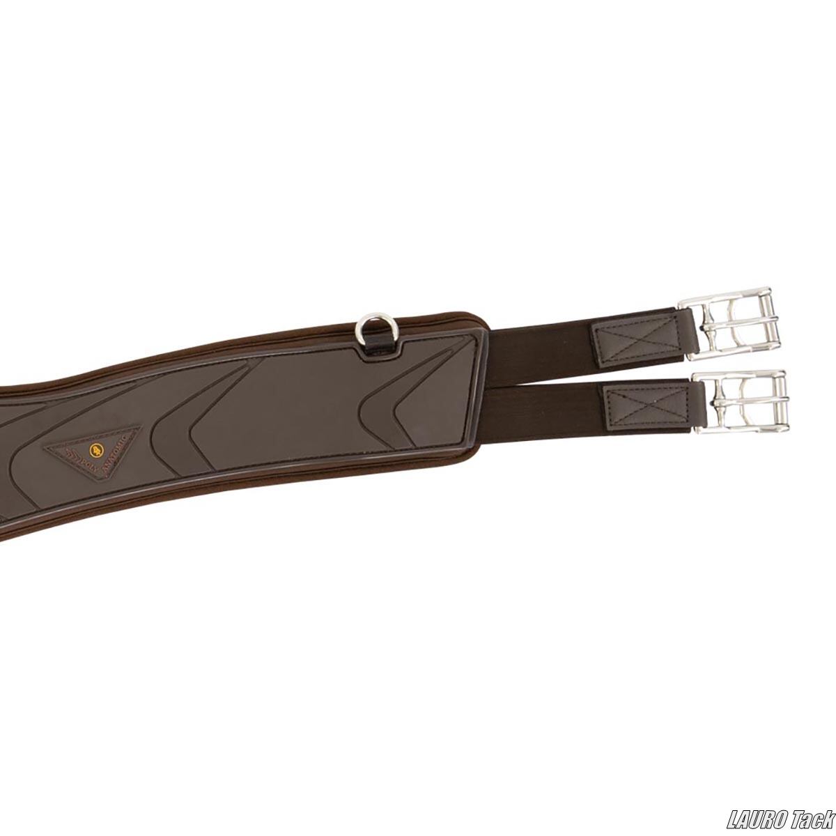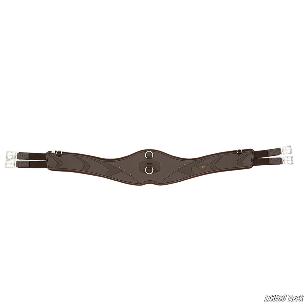 BRの障害用腹帯です。衝撃を吸収するネオプレンの裏地が付いています。カーブ形状で馬の動きを妨げにくい設計です。両端にゴムが付いています。中央に2つのDリングが付いています。両側にも補助手綱用のDリングが付いています。ステンレススチール製ローラー付きバックルが付いています。お手入れが簡単です。