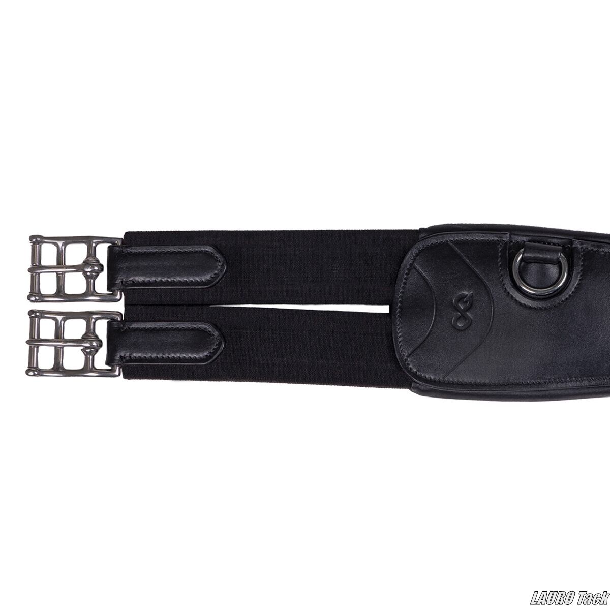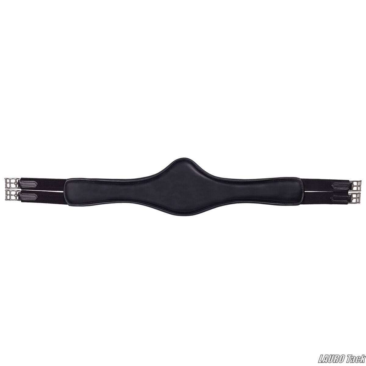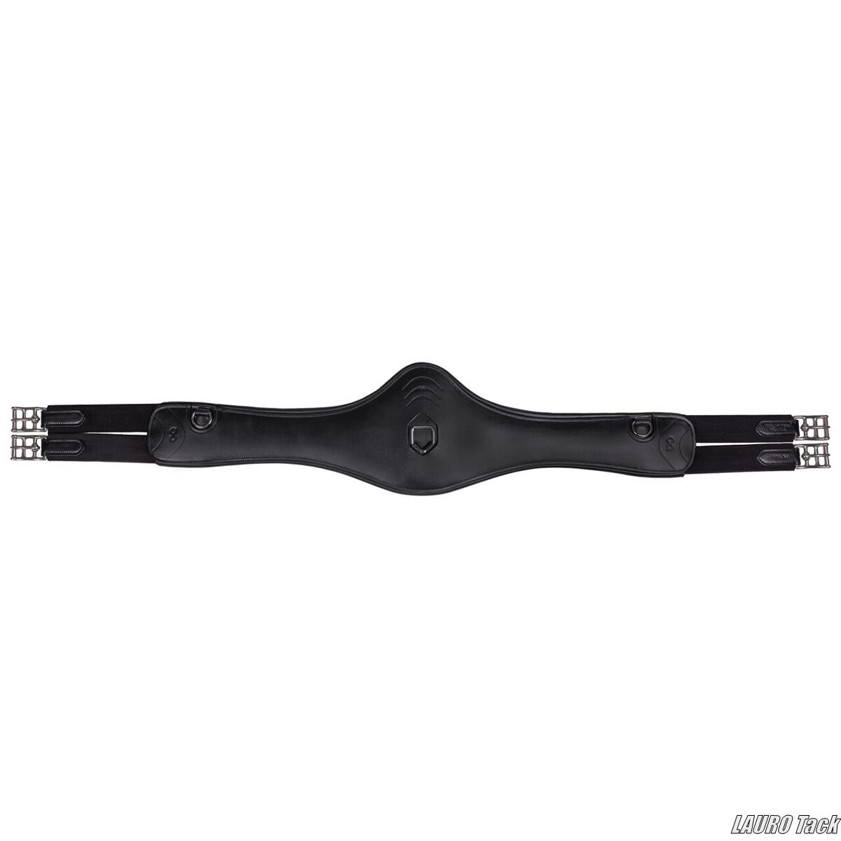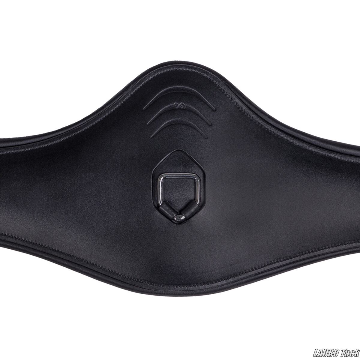 PresTeqの腹帯です。カーブ形状で圧力を均等に分散する設計です。非常に柔らかいジェルパッドが入り快適な装着感です。前肢の後ろのラインに沿う形状で馬の動きを妨げにくい設計です。胸骨部分に広い接触面を持ち圧力を分散します。バックルは筋肉の間に位置する設計で圧迫を抑えます。植物タンニンなめしのレザーとステンレススチール金具を使用しています。丸みのある形状で腹帯による擦れや引っ掛かりを防ぎます。