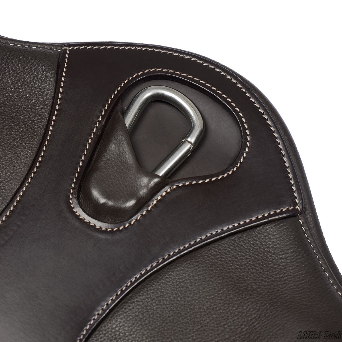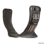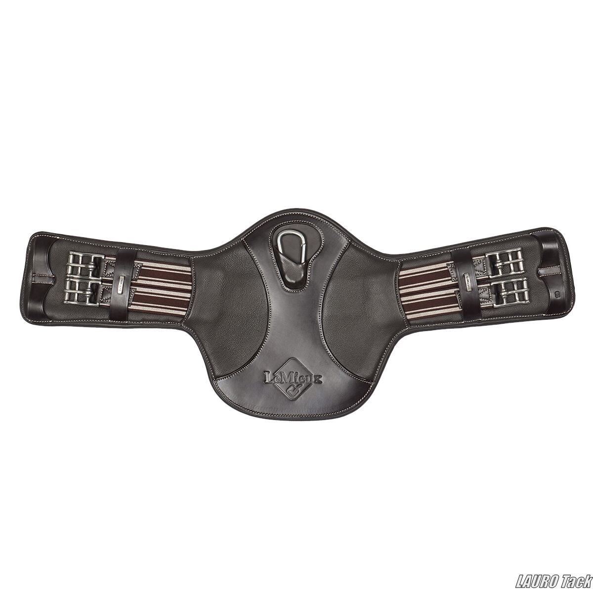 LeMieuxのショートタイプの障害用腹帯です。幅広のベリーガードがジャンプ時に馬の腹部を保護します。柔らかくしなやかなレザーを使用しています。腹部を保護するクッション付きレザー構造です。補助手綱を取り付けるためのDリングが付いています。中央にカラビナクリップが付いています。クロスしたレザーカバーが付きすっきりした仕上がりです。わずかに伸縮するストラップが付き鞍の安定性を保ちながら柔軟性を持たせています。柔らかいレザーが圧力を均等に分散します。通気性がありクッション性も備えています。敏感な皮膚の馬にも適しています。