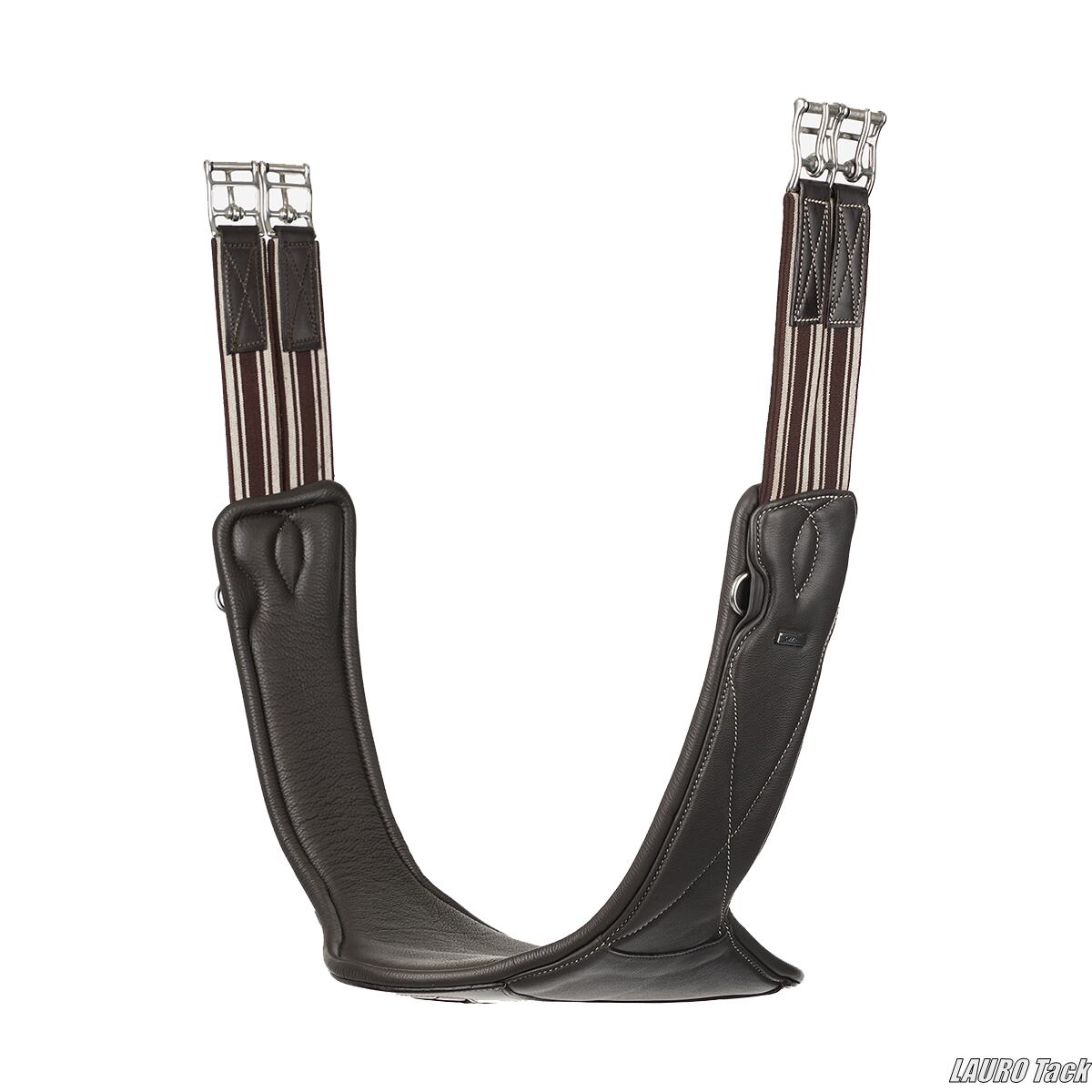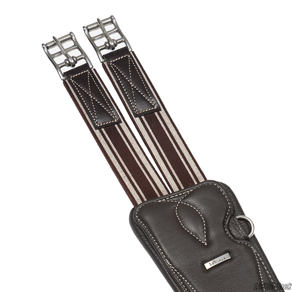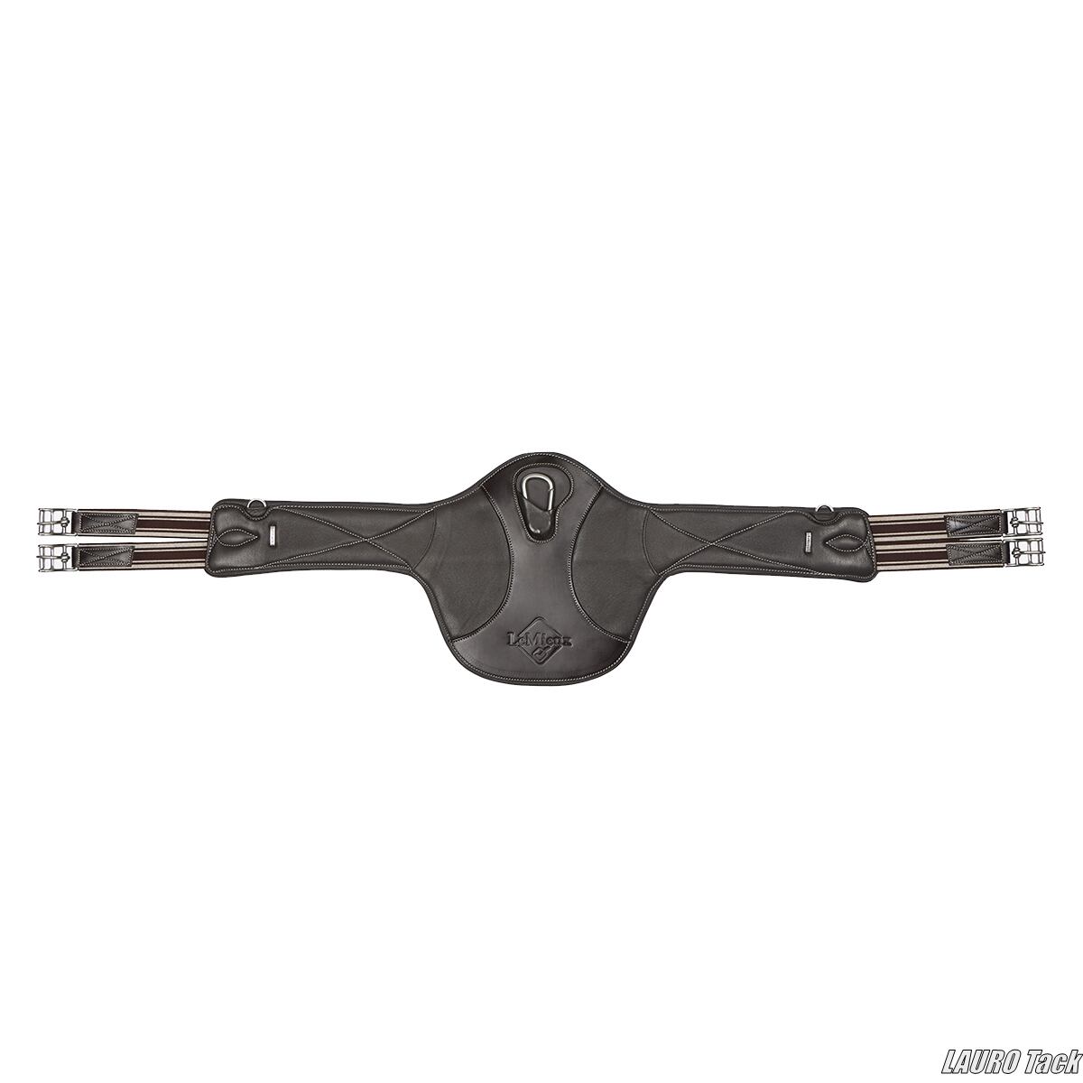 LeMieuxの障害用腹帯です。ジャンプ時に腹部を保護するベリーガード付きです。馬の動きを妨げにくい設計です。補助手綱を取り付けるためのDリングが付いています。中央にカラビナクリップが付いています。クロスしたレザーカバーが付きすっきりした仕上がりです。わずかに伸縮するストラップが付き柔軟性があります。圧力を均等に分散する設計です。肘まわりの動きを妨げにくく快適な装着感です。レザー専用クリーナーでお手入れしてください。
