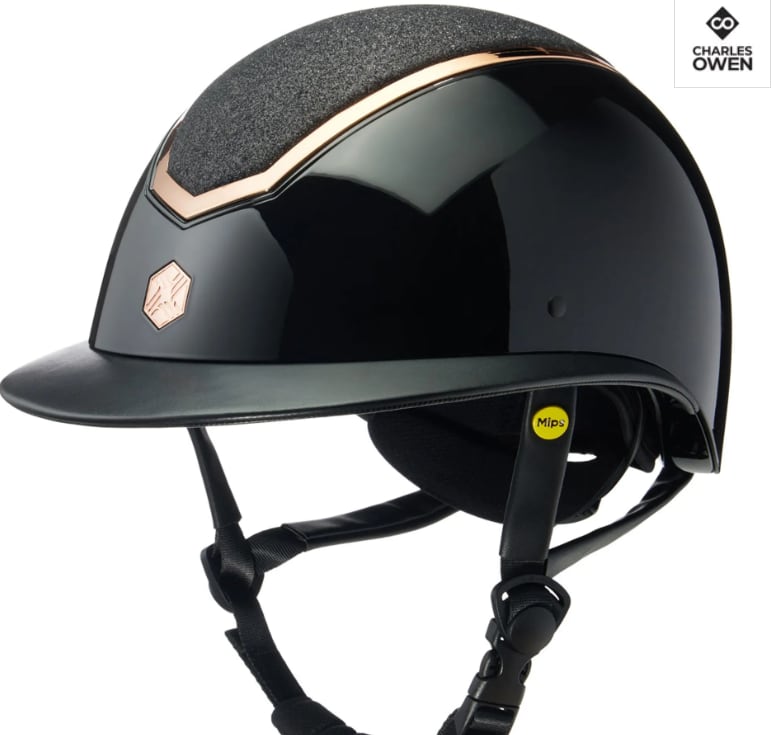 Charles Owen EQx Kylo MIPS Sparkly Wide Peak Hat - Black Gloss/Rose