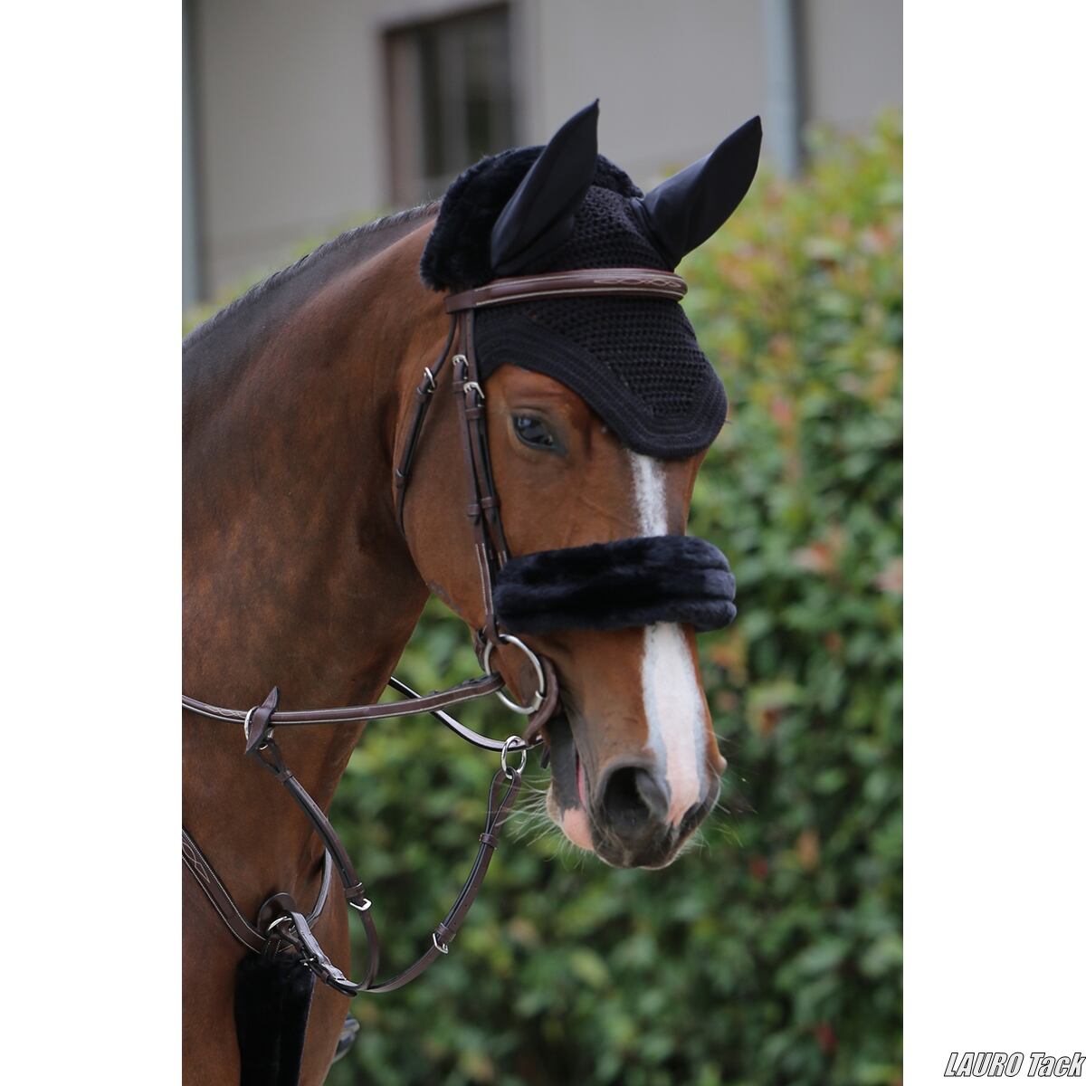 馬の鼻部分を擦れや圧迫から守るKentuckyの鼻革カバー。柔らかい人工ウール素材で快適な装着感を提供し、敏感な馬にも適しています。面ファスナーで簡単に取り付け可能。見た目にも上品で、汗や汚れから革を保護します。洗濯機で30度洗いが可能(乾燥機不可)。長さは約28cmです。