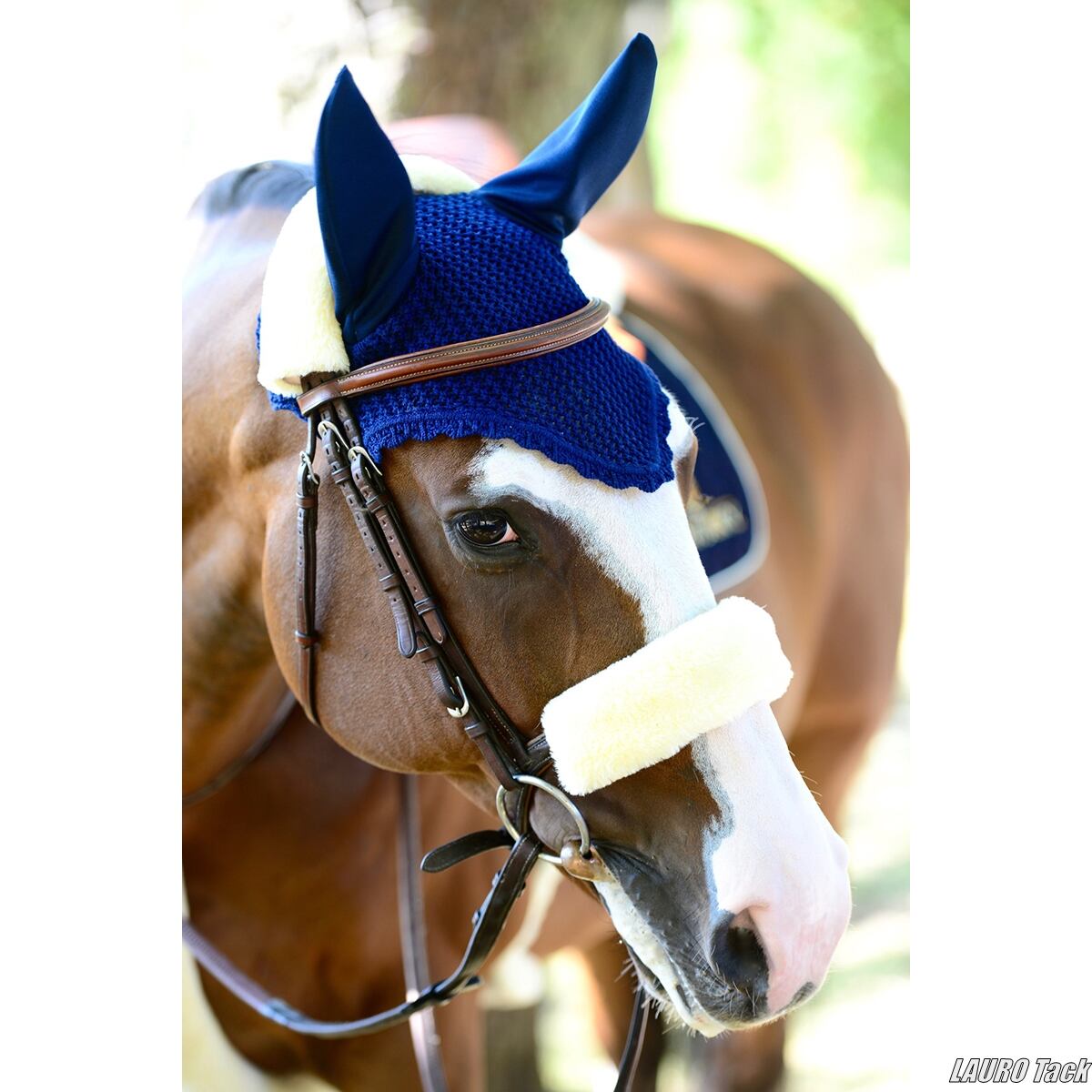 馬の鼻部分を擦れや圧迫から守るKentuckyの鼻革カバー。柔らかい人工ウール素材で快適な装着感を提供し、敏感な馬にも適しています。面ファスナーで簡単に取り付け可能。見た目にも上品で、汗や汚れから革を保護します。洗濯機で30度洗いが可能(乾燥機不可)。長さは約28cmです。