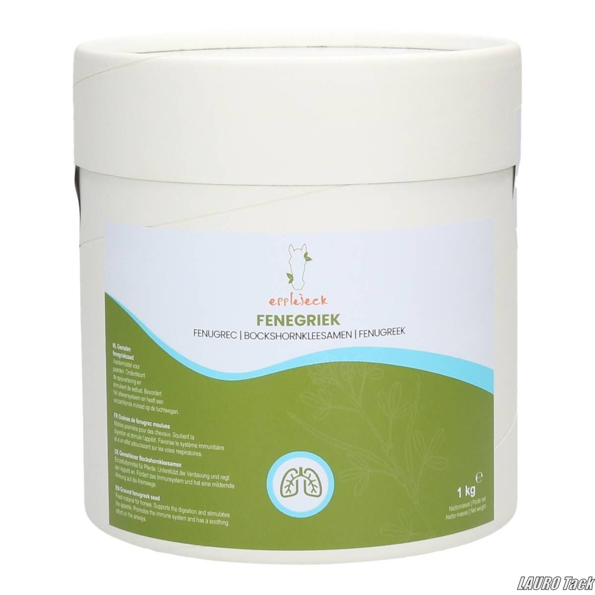 呼吸や消化のサポートに適したEpplejeckのフェヌグリークパウダー。乾燥させたフェヌグリークを100%使用し、呼吸のコンディション維持や腸内環境のサポートに役立ちます。被毛のツヤや全体的なコンディション維持にも適しています。内容量は1kgです。