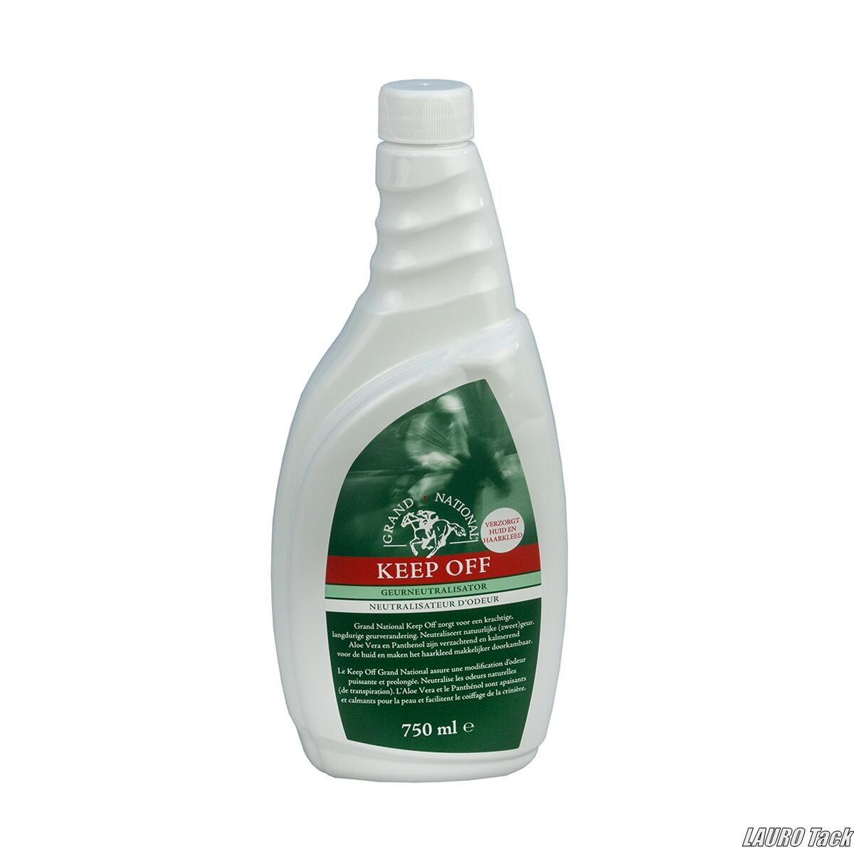 虫対策に使えるGrand Nationalのスプレー。体臭をカバーしながら被毛やたてがみ、尾、皮膚のケアも行えます。放牧時や屋外での使用に適しており、長時間持続する香りで虫を寄せ付けにくくします。