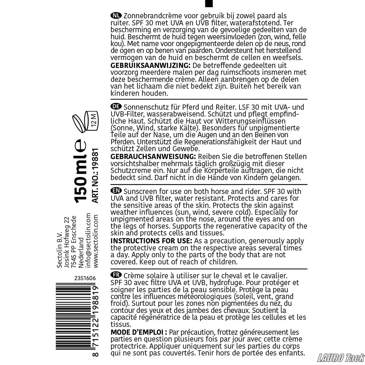 日差しから皮膚を守るSectolinの日焼け止めクリーム。SPF30で紫外線から敏感な部分を保護し、鼻先や目まわりなど日焼けしやすい箇所のケアに適しています。皮膚のコンディション維持と回復もサポートします。