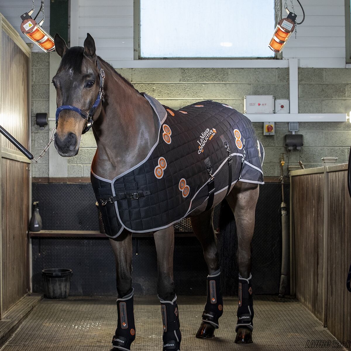 馬の体のケアに適したLeMieuxの磁気ケア用馬着。全体に織り込まれたスチール繊維と強力な磁石により血行をサポートし、筋肉や体のコンディション維持に役立ちます。通気性のある軽量素材で長時間の使用にも適しており、厩舎内や輸送時のケアにも対応します。体にしっかりフィットする設計で、効率よくサポートします。