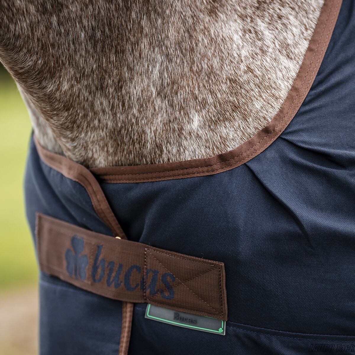 汗抜きやクールダウンに適したBucasのリネン素材クーラー馬着。通気性に優れた天然素材を使用し、抗菌性にも配慮されています。肩の動きを妨げにくい設計と調整可能なベルトで快適にフィットします。
