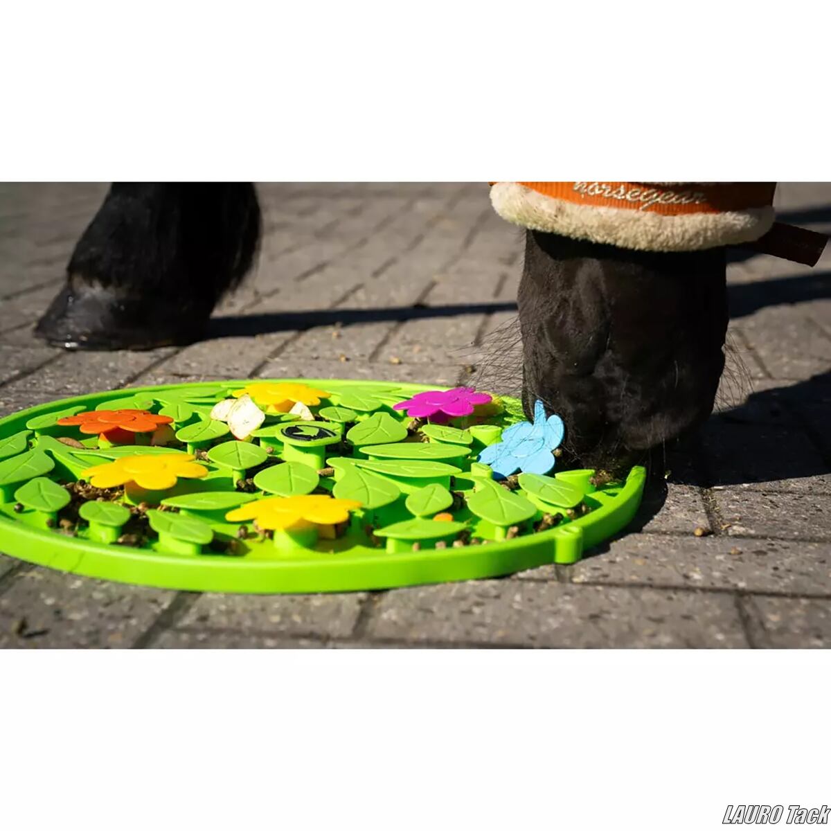 馬の退屈防止に役立つExcellentのノーズワークマット。マットに隠した餌を探すことで遊びながら頭を使い、ストレス軽減や集中力の維持に役立ちます。厩舎での暇つぶしや運動不足の対策に適しています。