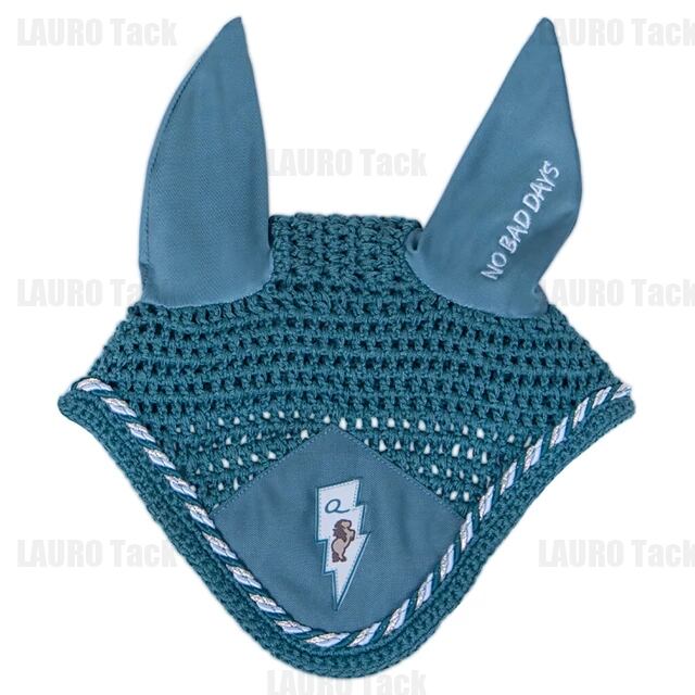 QHPのサンダーボルトコレクションからのスポーティーなイヤーネットは、耳部分に伸縮性のある素材を使用し、トリカラーの装飾コードとフラッシュのイラストが先端に美しくデザインされています。このイヤーネットは、洗練されたスタイルと目を引くディテールを備えており、エクエストリアンファッションにスポーティーなアクセントを加えることができます。