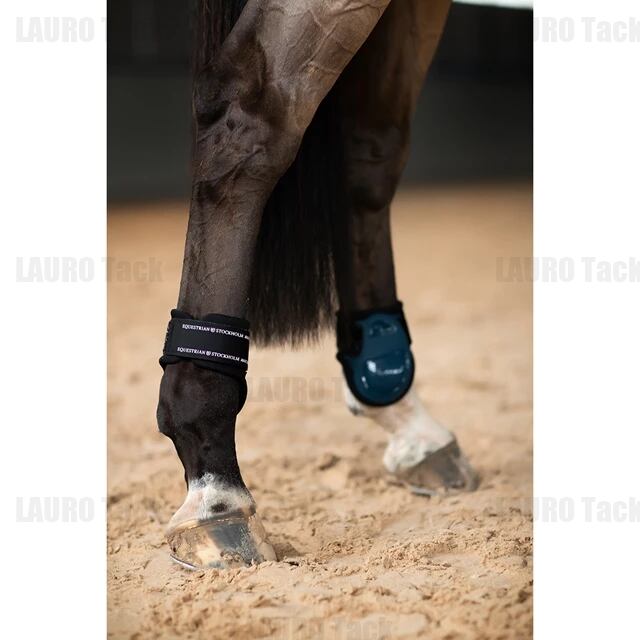 エクエストリアンストックホルムのブルーメドウコレクションからの後肢用ブーツは、馬の脚に完璧にフィットし、解剖学的なフィット感を提供します。ネオプレン裏地はクッション性があり、衝撃吸収性に優れています。ブルーメドウの美しい外観と便利なクイックリリース、魅力的なハニカムディテールが特徴です。TPUの頑丈な外殻も装備されています。快適な装着感とスポーティなデザインで、2つのブーツがセットで提供されます。