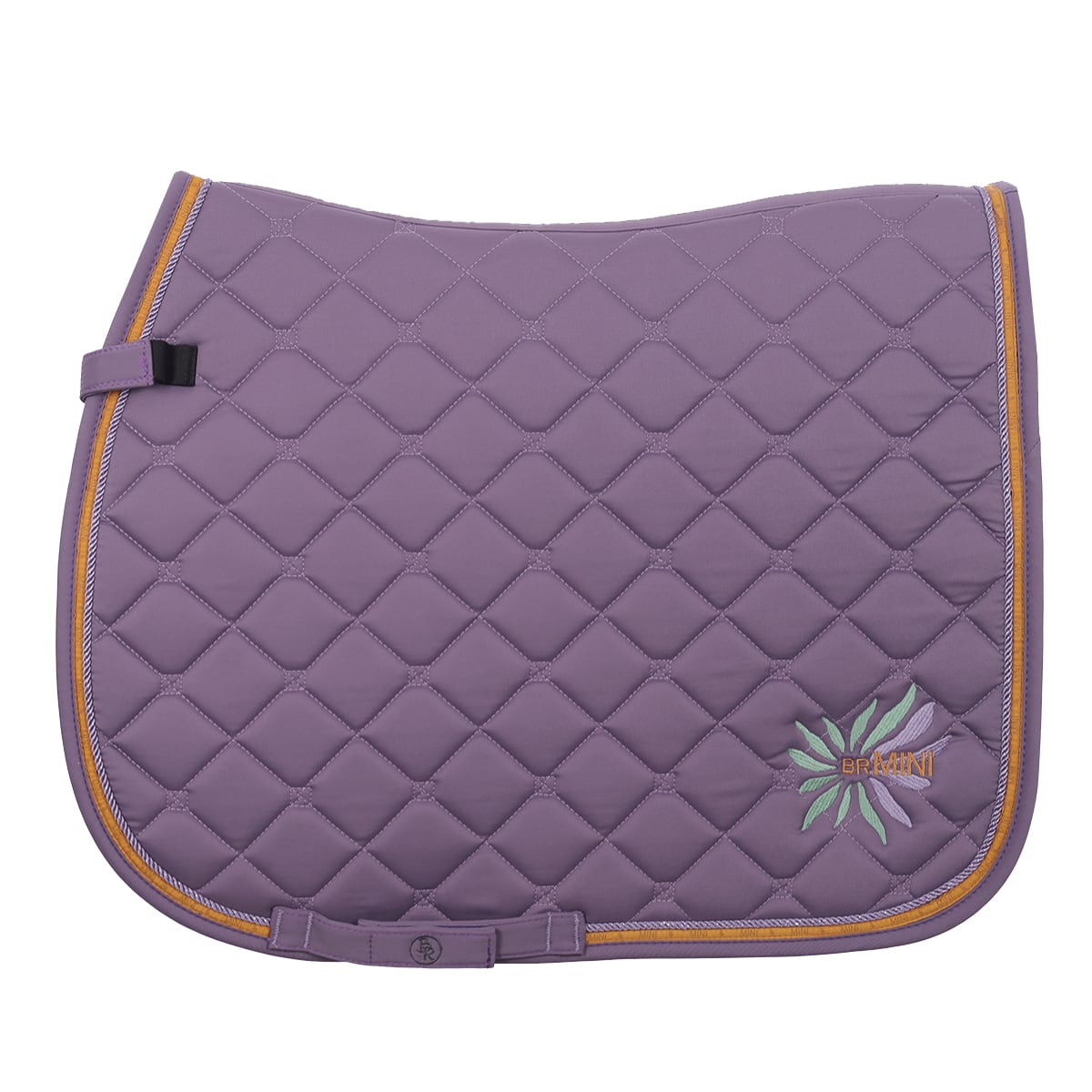 BR Mini Horseコレクションのこのゼッケンは、最小のポニーのために特別に設計されています。馬体にフィットする形状で、肩周りに十分な余裕を持たせ、鞍のループと腹帯ループによってしっかりと固定されます。豪華なキルティングと目を引く黄色のキラキラパイピングがスタイルを演出し、花のデザインが施されたBR Miniロゴが仕上げを完璧にします。
