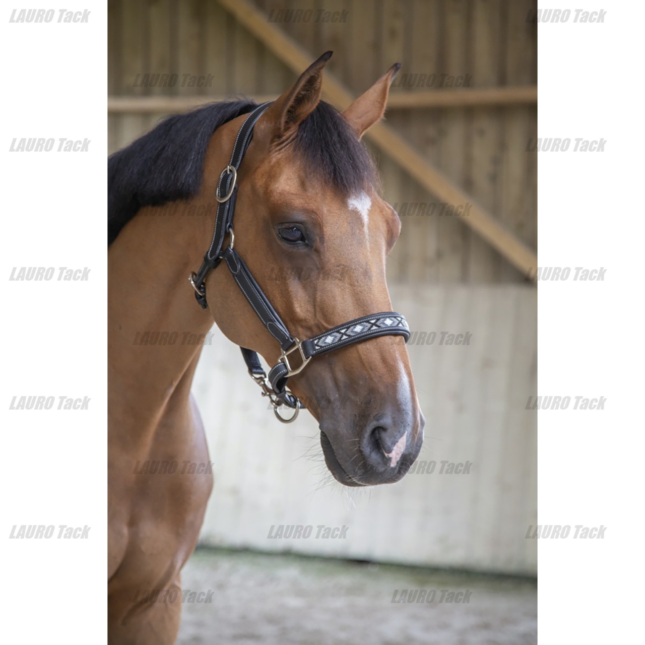この無口は、革で作られており、美しいビーズが特徴的なユニークなデザインです。ステンレス製のバックルとクイックリリース式の留め具付きの咽喉ストラップにより、美しいだけでなく耐久性も機能性も兼ね備えています。無口はフルグレインレザーで裏打ちされており、快適さを提供します。また、ヘッドピースのダブル調整と調整可能な鼻帯でフィット感を調整できます。Penelope Pearl Halterで馬にファッショナブルで快適な無口を提供しましょう。